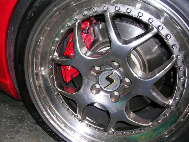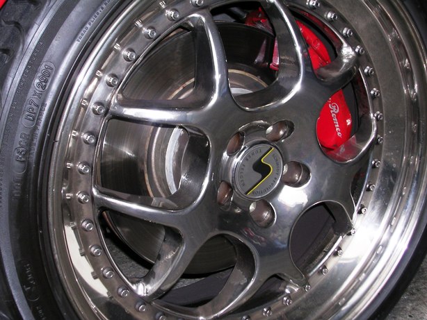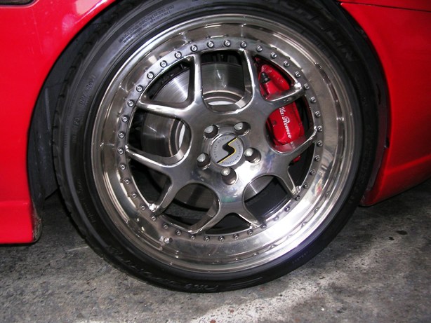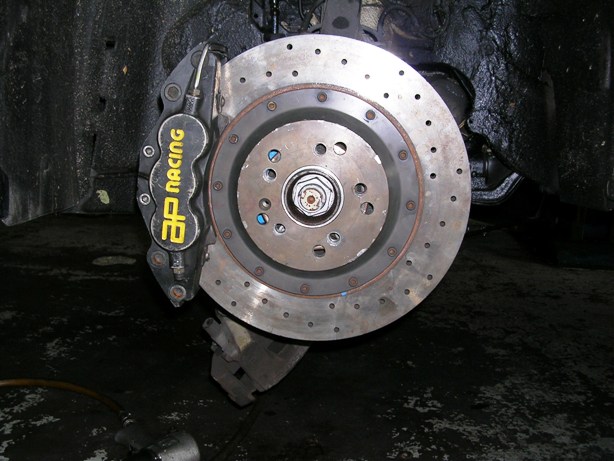 These calipers and 330mm discs are taken off a BMW 330i (aftermarket fitment kit)